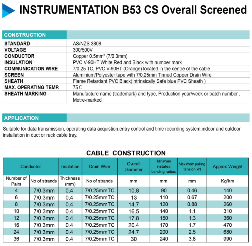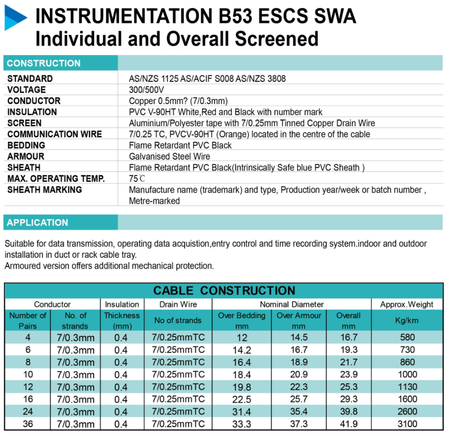 Fire Resistant Instrumentation Cables FR-XlOL,FR-XlOSL Multi-Pairs