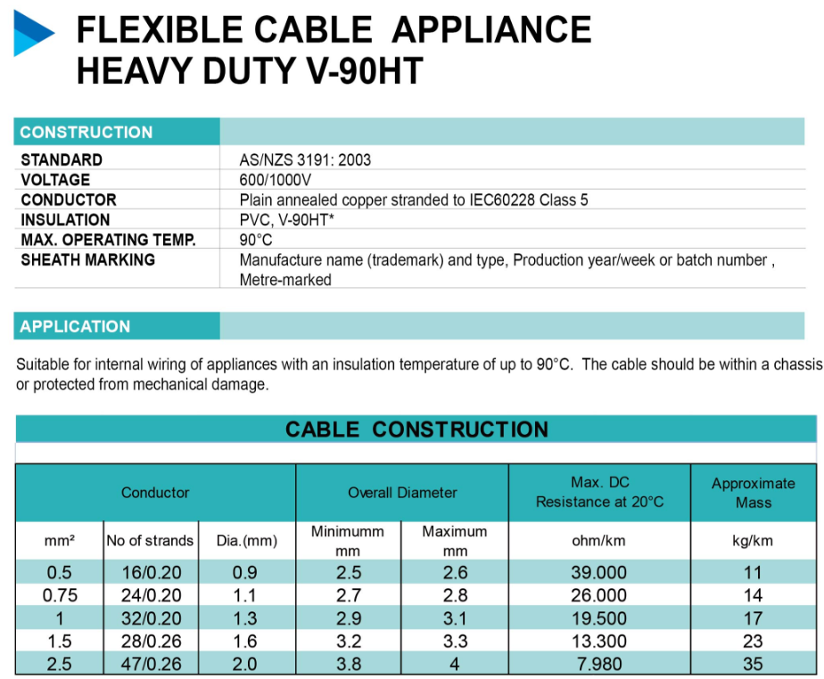Flame Retardant Cables FRT-XH, FRT-XSH 2Cores-4Cores