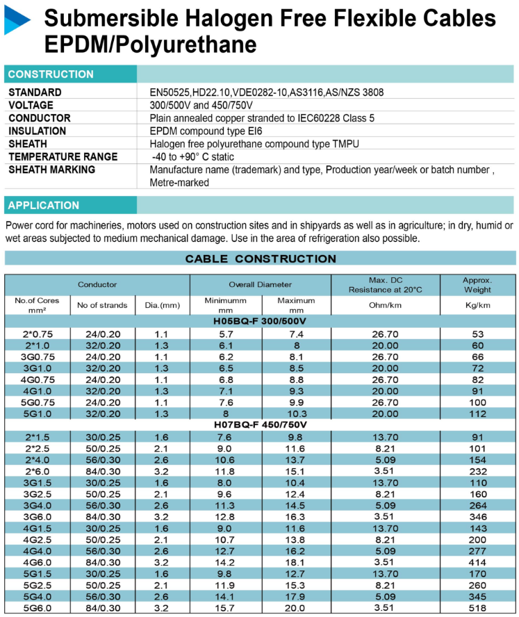 Flame Retardant Cables FRT-XH, FRT-XSH 2Cores-4Cores