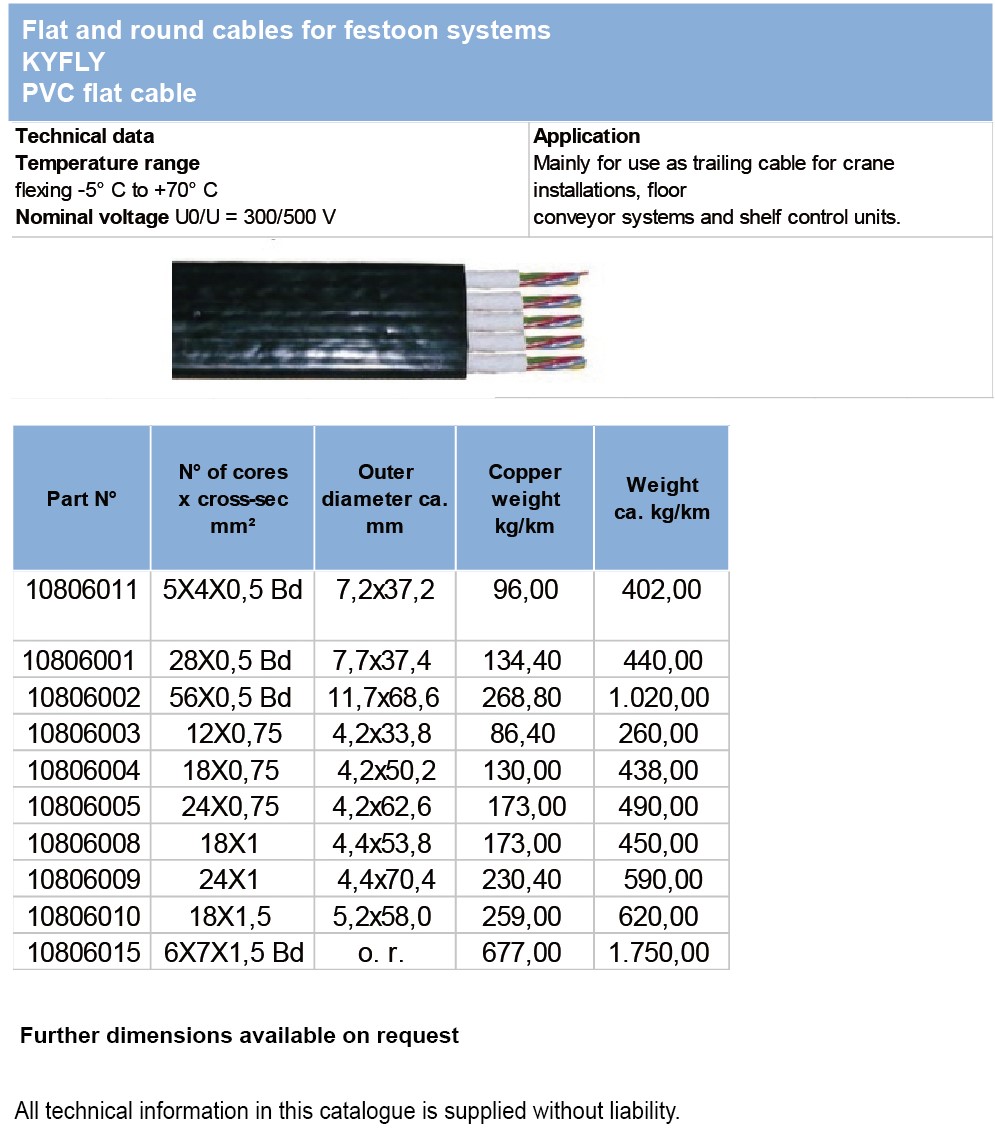 Flat and round cables for festoon systemsKYFLY PVC flat cable