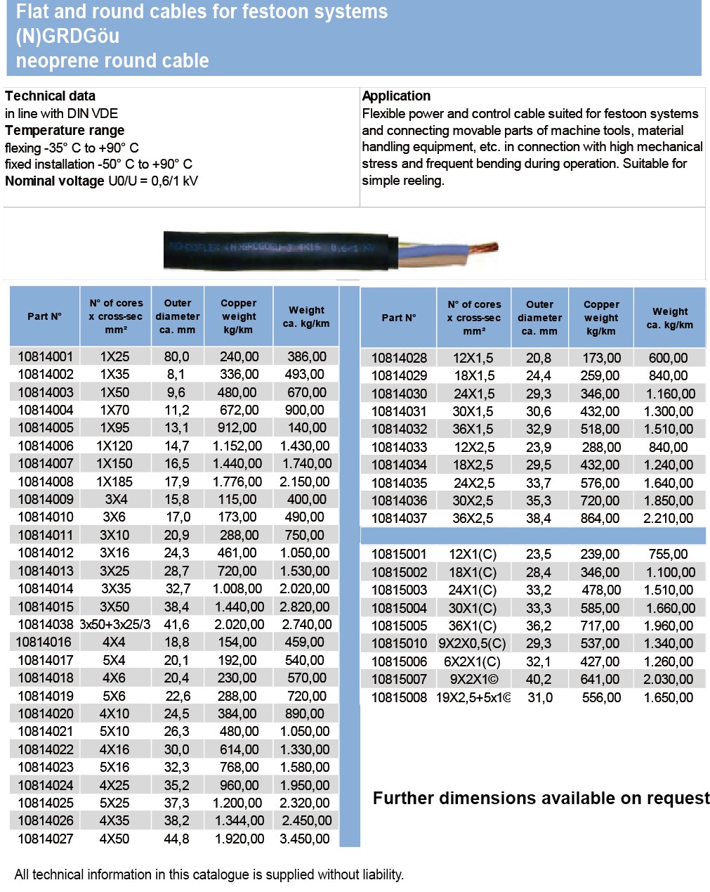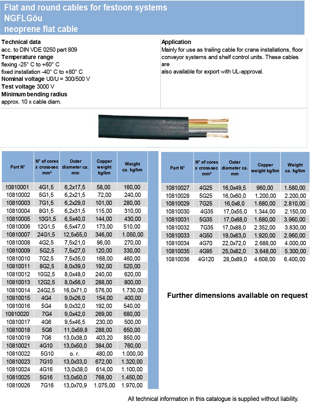 Flat and round cables for festoon systems NGFLGöu neoprene flat cable