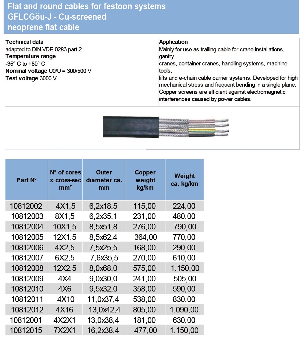 Flat and round cables for festoon systemsGFLCGou-J-Cu-screened neoprene flat cable