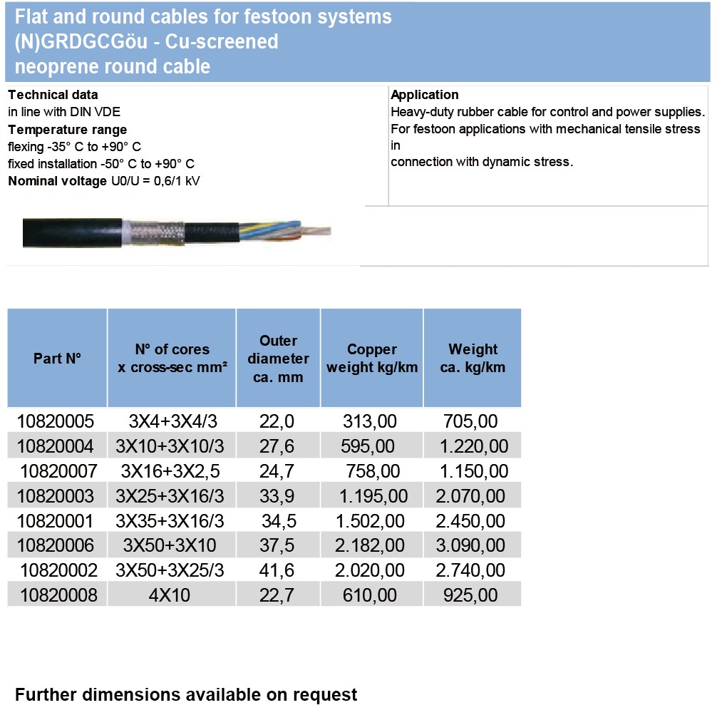 Flat and round cables for festoon systems(N)GRDGCGöu -Cu-screened neoprene round cable