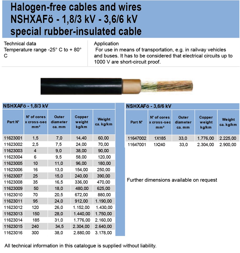 Halogen-free cables and wiresNSHXAFö -1,8/3 kV -3.6/6 kVspecial rubber-insulated cable
