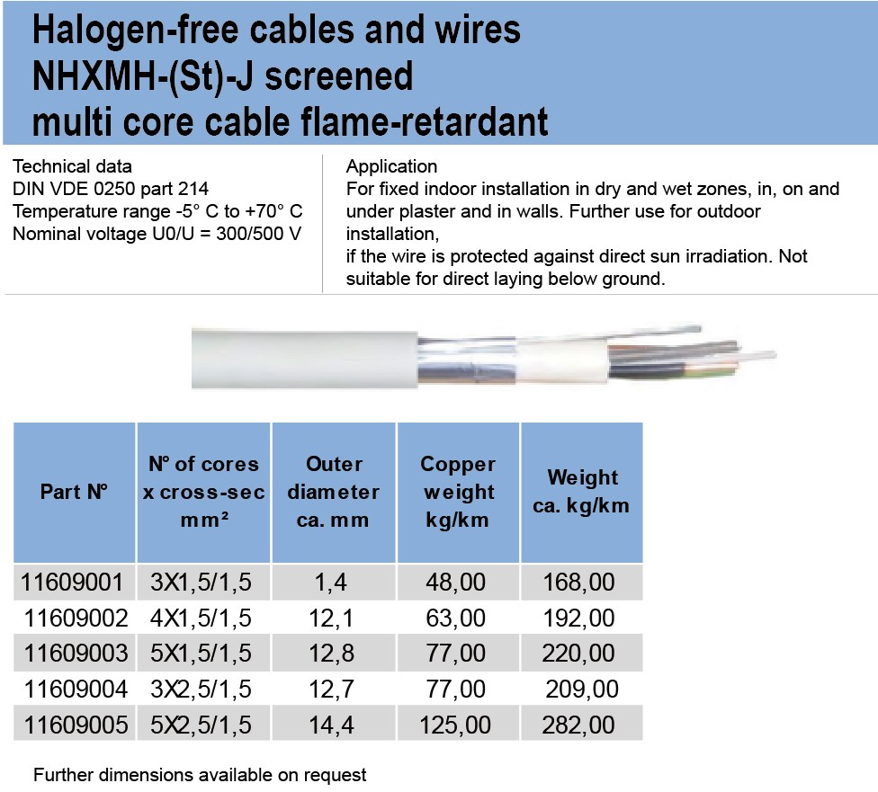 Halogen-free cables and wiresNHXMH-(St)- screenedmuti core cabe fame-retardant