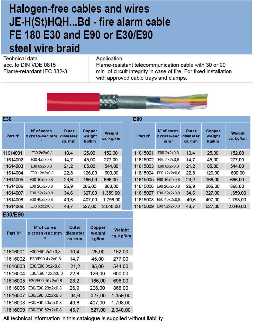 Halogen-free cables and wiresJE-H(St)HQH..Bd . fire alarm cable FE180 E30 and E90 or E30/E90 steel wire braid