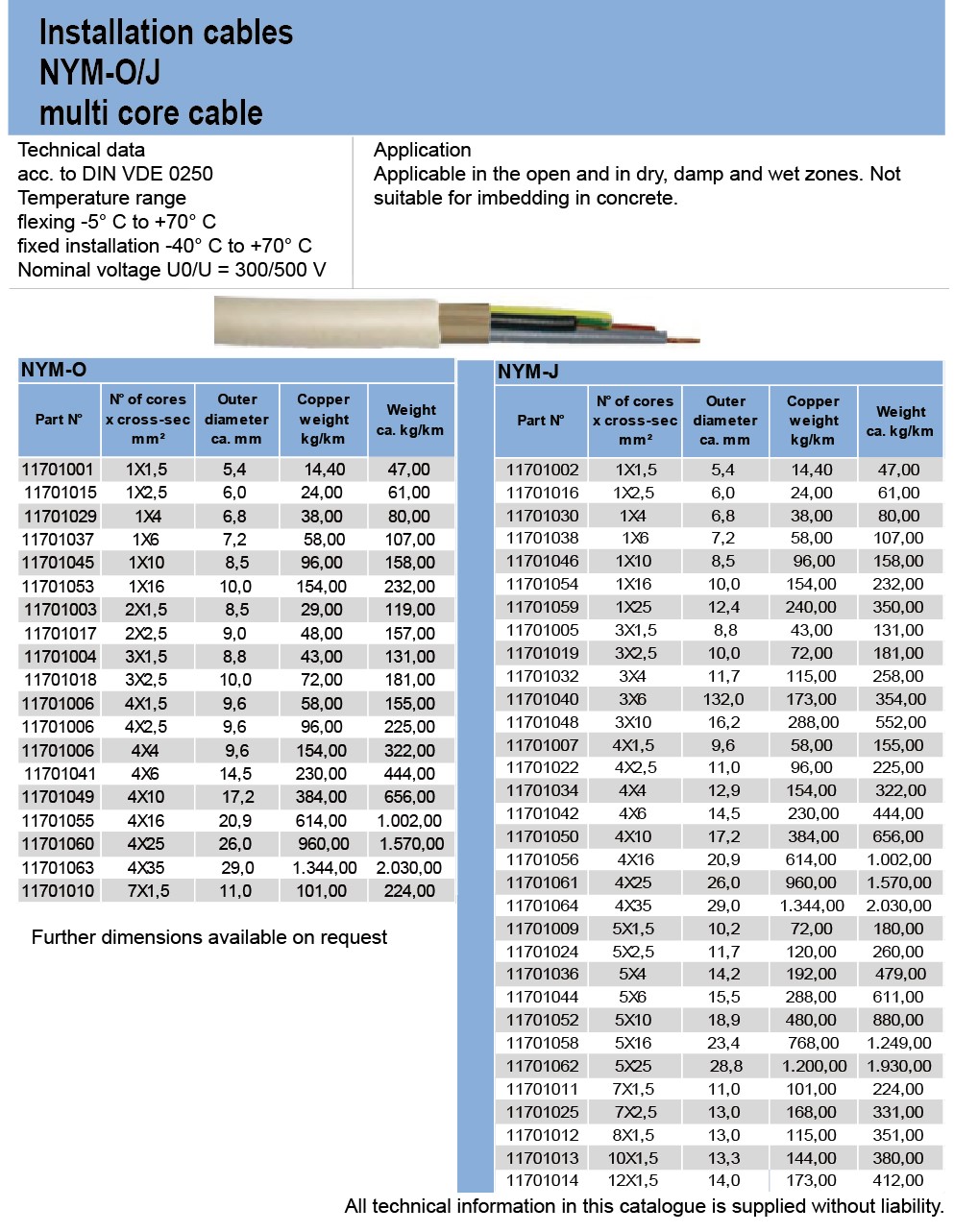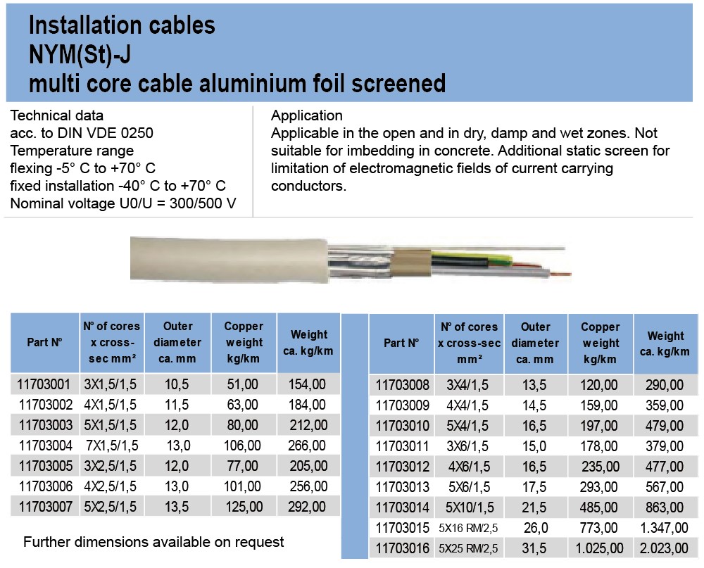 Installation cablesNYM(St)-Jmulti core cable aluminium foil screened