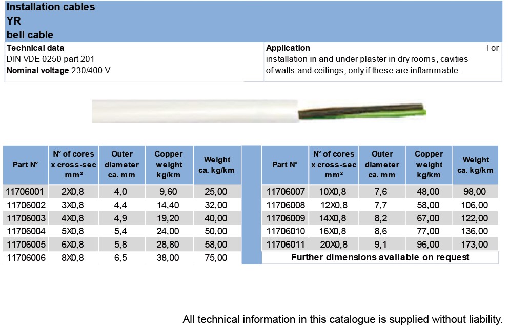 Installation cablesNYIF-OJ tape conduit YR bell cable