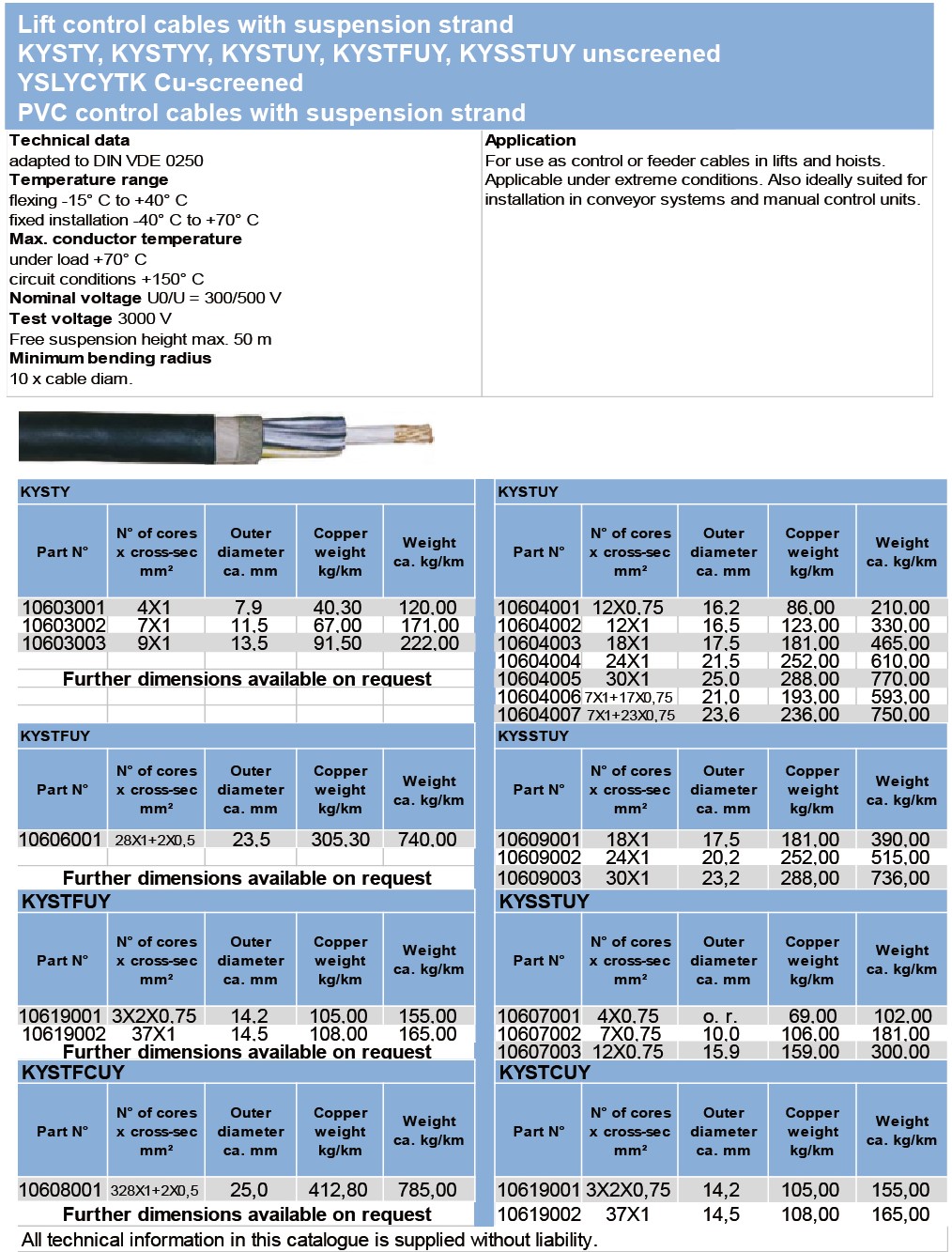 Lift control cables with suspension strand KYSTY. KYSTYY, KYSTUY, KYSTFUY, KYSSTUY unscreened YSLYCYTK Cu-screened PVC control cables with suspension strand