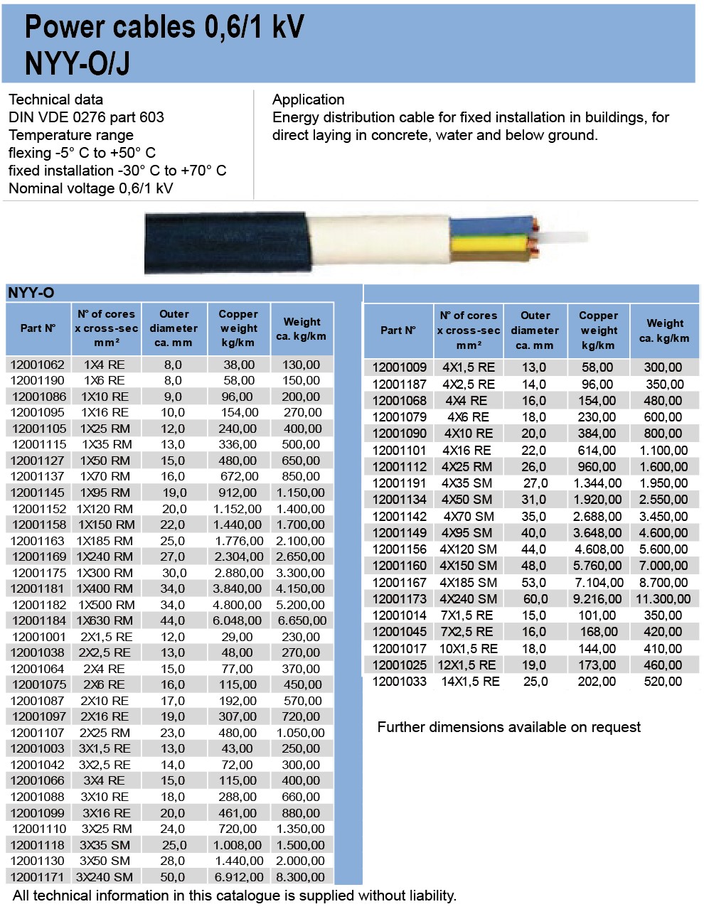 Power cables 0.6/1 kV NYY-O/J