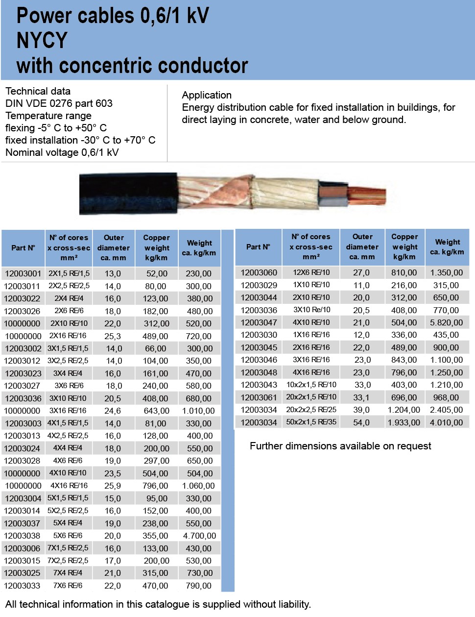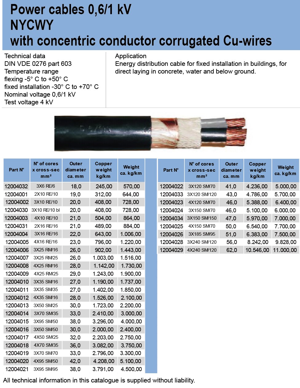 Power cables 0.6/1 kVNYCWY with concentric conductor corrugated Cu-wires