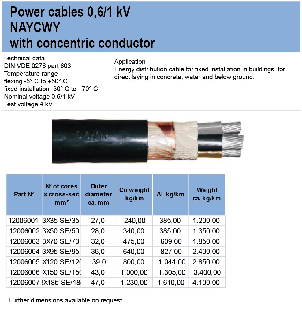Power cables 0.6/1 kVNAYCWY with concentric conductor