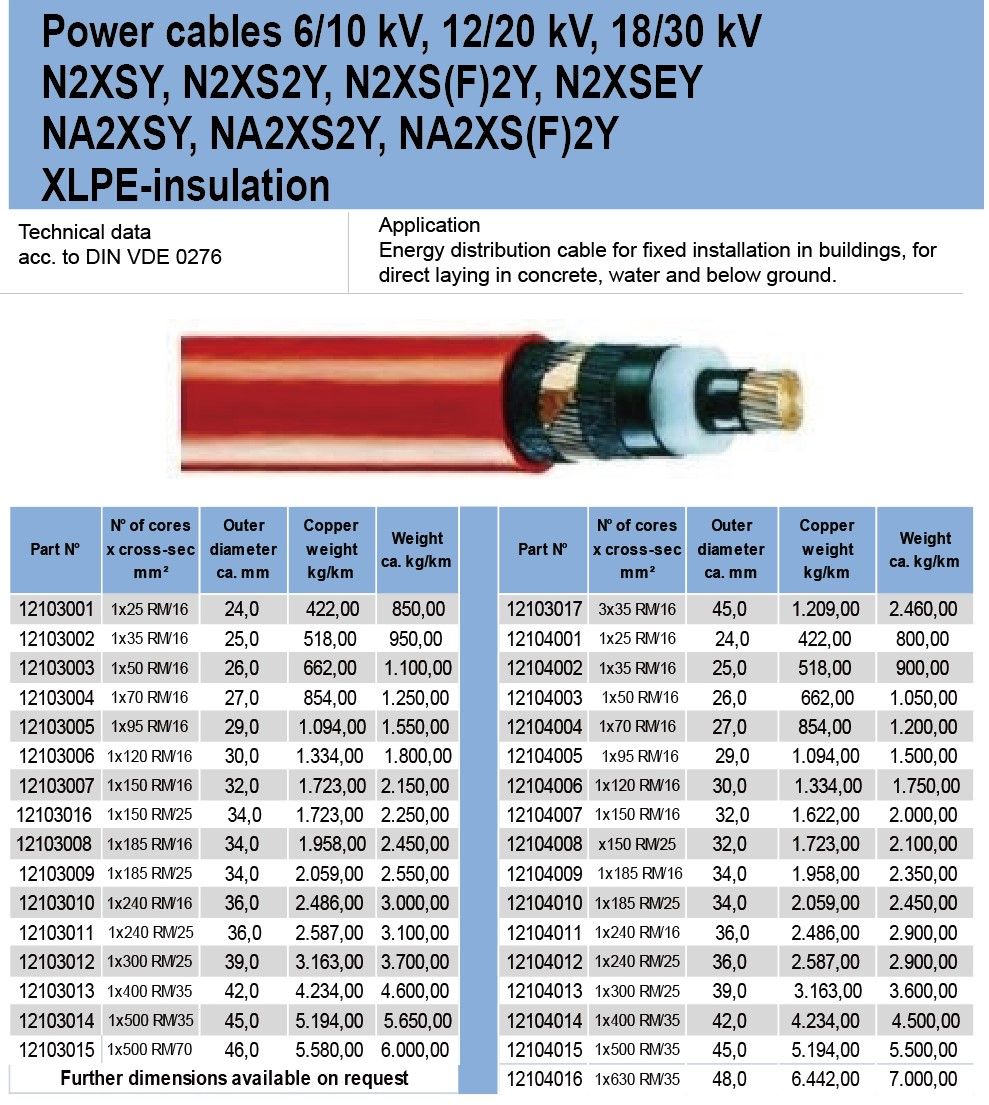 Power cables 6/10 kV, 12120 kV, 18130 kVN2XSY, N2XS2Y, N2XS(F)2Y, N2XSEYNA2XSY, NA2XS2Y, NA2XS(F)2YXPE-insulation.