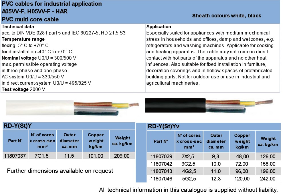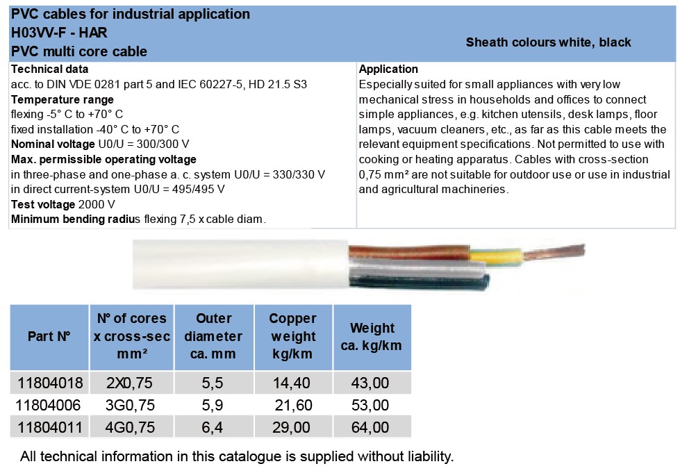 PVC cables for industrial application HO3VH-H-HAR PVC twin cable/multi core cable