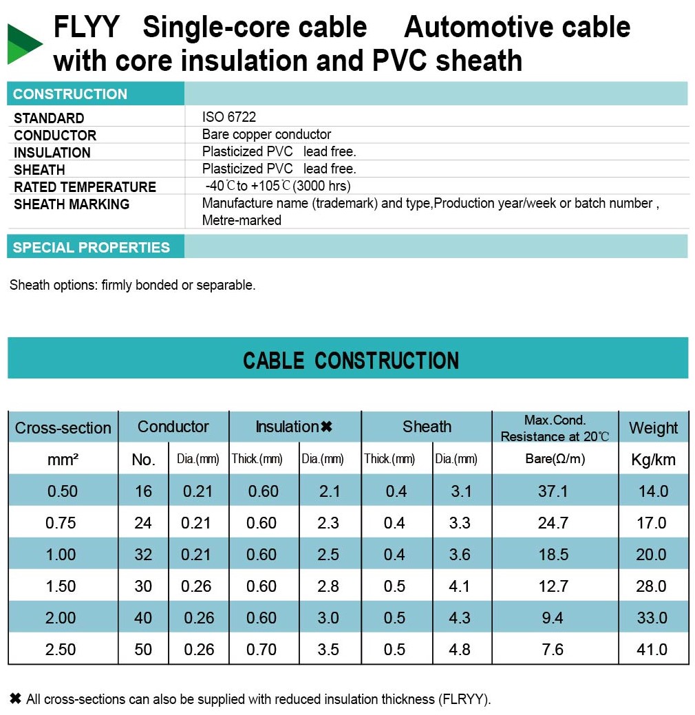 FLYY Single-core cableAutomotive cablewith core insulation and PVC sheath