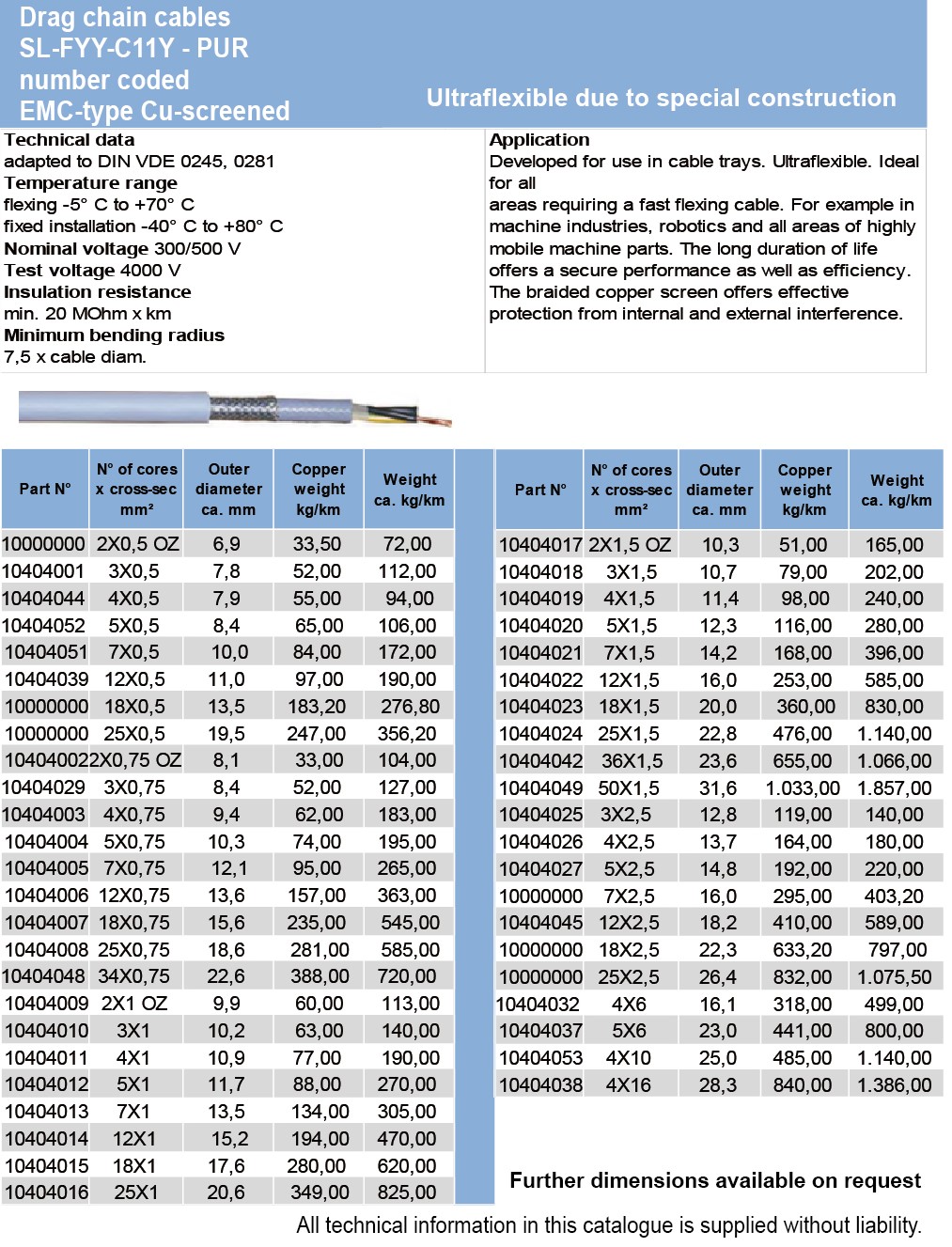 Mainly for use as trailing cable for crane installations, floor conveyor systems and shelf control units.