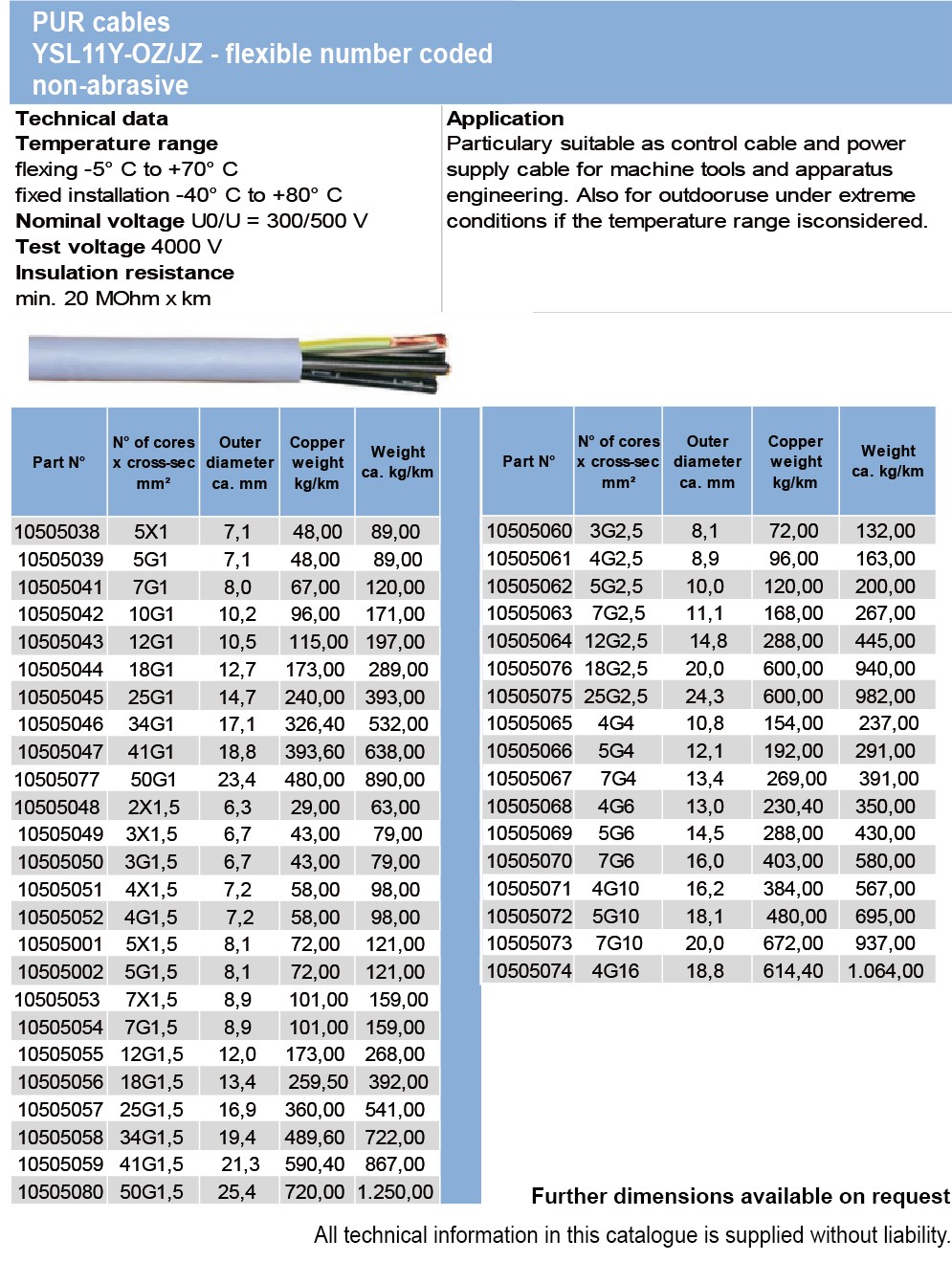 Heavy-duty rubber cable for control and power supplies. For festoon applications with mechanical tensile stress in connection with dynamic stress