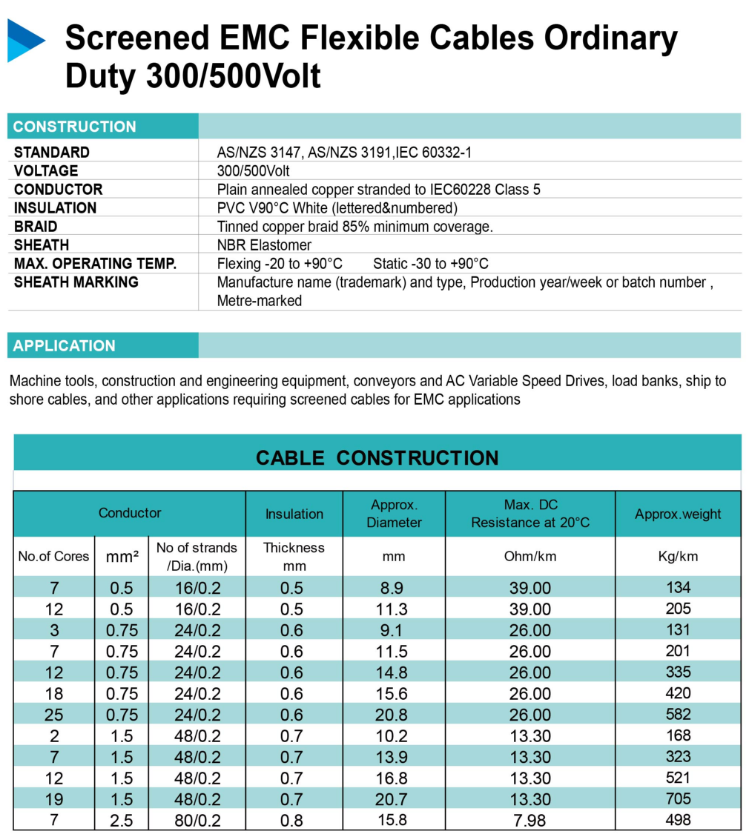 Screened EMC Flexible Cables OrdinaryDuty 300/500Volt