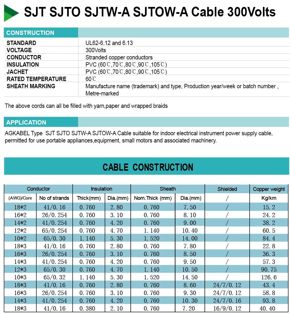 SJT SJTO SJTW-A SJTOW-A Cable 300Volts